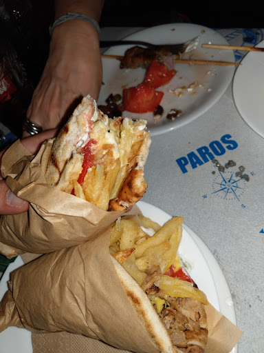 Read moreAbsolutely delicious food. We went 4 times during the 6 days we were staying at Paros. The food is excellent and fairly priced. We ate the gyro pitas with kebab, and with sausage. We shared a Greek salad, and ate the chicken souvlaki that was the best we ever had. Incredibly tasty, juicy, and we couldn’t stop thinking about it until we came back. All the food we are here was amazing.