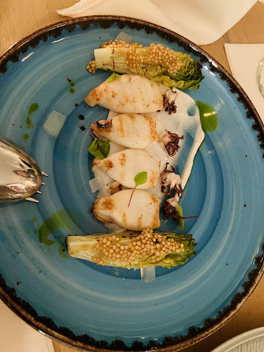 Exquisite food in a beautiful setting, although I felt compelled to subtract a star due to the eye-wateringly high prices. The mains average close to €40. Fortunately, we were in the mood for a light meal and shared the Cycladic salad (cherry tomatoes, cucumber, carob rusks, local cheese and olives), an appitizer (the "crispy" sea bream in a light tempura, which my wife thought was the best fish she's eaten in Greece), and a delicious orzo with shrimp. We certainly had no objection to the quality of the food and service was friendly and professional. We were guests at the Yria Hotel, but if you are in the mood for a sophisticated meal and don't mind the price, definitely...