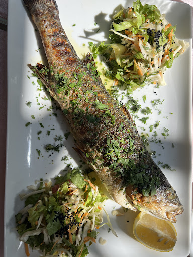 Best lunch we had on our multi island Cyclades trip. Our first meal off the ferry in Paros and beyond any expectations. Service was warm, friendly and attentive. The dip sampler was impeccable - among the favorites was the fava bean dip and the tarama. We ordered the barracuda and it was grilled to perfection - the fish slid off the bone and the skin had hints of herbs and seasoning. Salad with carob rusks well made. It was great surprise to find a local IPA (excellent, coming from California we get picky) that was a great complement. We were surprised with a complementary baklava that blew away any I have ever had - spiced, flaky, not overly syrupy. The owner and her family went above and beyond at all fronts. And an important bonus - the space itself is well shaded and overruning with plants, welcome refuge from the heat and channelling the breeze.