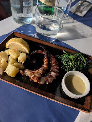 This was the worst restaurant I ate at in Greece. The dishes were expensive and the portions were extremely small. For the price, I expected a much larger main course. Furthermore, the food was not good: the stuffed squid and the octopus were rubbery. The last one in particular was ridiculous and should have been sold as an appetizer. Aside from the problem with the dishes, we were also seated at a table far away, against the wall, and the minute I arrived I could smell cat poop. And what's worse, in less than five minutes a cockroach appeared and climbed the wall, almost getting into the plate of the woman at the next table. Luckily for the place, the woman simply pushed the cockroach away with a paper napkin and didn't cause any fuss. Of course, the restaurant is in a port area and sometimes insects can appear, but in any case, this situation only contributed to the terrible experience. Finally, we had problems paying the bill; the employee had to go back and forth several times with a different card machine because there was no signal. In short: there are countless restaurants with a lower...