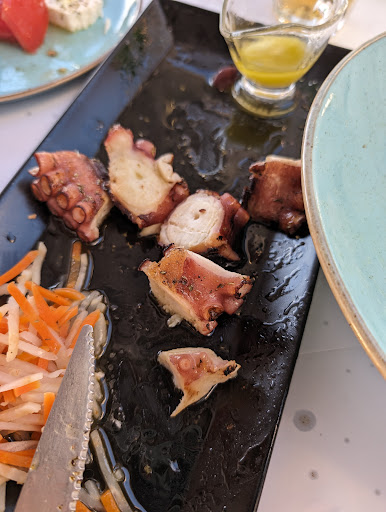 Read moreUnfortunately I had a bad experience here that impacts my review. My significant other and I were seated at 12pm without a reservation, and the restaurant of course is popular with a view of the ocean. We ordered watermelon feta salad and grilled octopus, which the server said was good and local. The watermelon salad was pretty good with the pesto sauce and pomegranate syrup. The grilled octopus was another story.