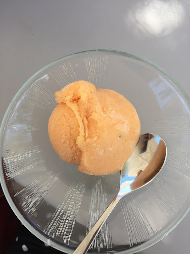 Beautiful restaurant on the beach with exceptionally good food. This restaurant is really a hidden gem. We only found it thanks to google reviews and want to do it justice with another fabulous review. The restaurant is close to the airport, 15 min away, im a quiet little village. It sits right on the beach with tables / chairs on the actual beach and on the sprawling patio facing the beachfront. We started lunch with a lovely bottle of local rose - dry with floral overtones and a hint of citrus. For appetizers we had a sort of salad that involved a birds nest fillo dough with peeled cherry tomatoes, fresh mozzarella and grapes - very original. Also the smoked eggplant salad - again original in its smokiness with a hint of paprika and chopped tomatoes. The grilled squid was fresh and perfectly cooked - marinated in lemon oil sauce and herbs. The truffle risotto is one of the best I’ve ever had - the texture of the risotto really was perfect, just the right consistency, it was creamy and full of truffles. We finished with a homemade sorbet of nectarines - it was like eating the real fruit but even better, and quite refreshing.