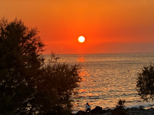 Enrico and Monica have created a tiny piece of Greek heaven that will live long in your soul. The rooms are simply stunning. The simplistic design, use of light and tasteful decoration are everything you ever dreamed of. Sitting on the balcony at night watching the sunset setting fire to the sky and lighting up the sea with a deep orange hue extracts the air from your lungs and leaves you feeling dizzy with joy. But that’s only act one. Act two begins when the moon appears shooting shards of white light across the dark water of the tiny bay. It has to be experienced to be believed. Photographs simply cannot catch the drama of the experience.
