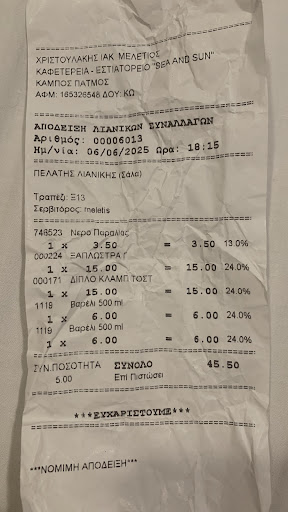 Read moreThis place right on the beach is in a prime location and the staff are very welcoming and friendly. The food served during our visit was the special of the day and it was lamb being cooked at the roadside which in its self draws people's attention. We more or less were compelled to have a meal here by the attentions of the waiter. We initially ordered two frappes without seeing any menus ( mistake number 1) then after a while invited to be seated for food which to be honest we were interested in the spit roast cooking by the road side.e were offered Greek salad and tzatziki, and then spit roast lamb with French fries. We agreed! All in all the food was very good and the service also good, However after the meal we asked for the bill and was charged 83.50 Euros which included a beer and a coke.. We paid this and of course, as being British we never seem to complain, and all we can say after the event is that the cost was excessively high for what we had.. We feel that not seeing a menu and not receiving an itemised bill is not the standards acceptable and believe that it is a legal requirement under greek law to provide an itemised bill so the establishment needs to step up and comply to the requirements and more so to the traditional customary Greek honesty and respect to it's visitors. We would not visit this place again and sincerely warn others to be more aware than we was. After receiving a reply to our review which was totally denile. I ask if they would be brave enough to state the actually charges of my bill. Two frappa, one coke, one beer, one Greek salad, one tzatziki, two lamb and chips....
