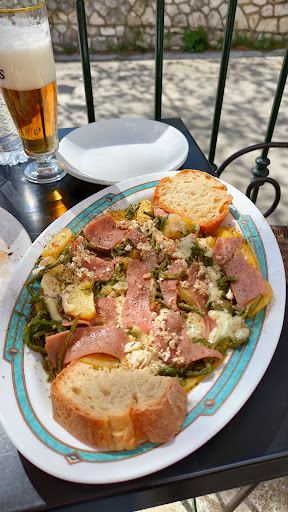 Location and people are nice, but they barely have any food at 2pm, no menu, so we got a piece of cheese and 2 meetloafs with a child size portion French fries, a tapwatter and a 200ml soda , bill came out to 13euros...my jaw dropped ..they do have free wifi, so there is that...tasted good , I guess if you are not on a budget it is a nice place, we felt as tourists we got ripped off on purpose, there is no way locals pay that much for this little food...and this is a locals spot far away from...