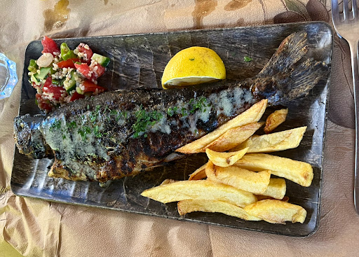 Read moreWe came in as we read the reviews about the fresh grilled trout - and we were not disappointed! At first the taverna looked empty, but that was only because everyone was sitting at the river :) Besides the amazing, tasty fish we ordered baked feta and the kolokytho keftedes (zucchini patties) and both were absolutely delicious. The patties were crunchy on the outside and soft on the inside and smelled wonderfully of dill. Baked feta was as tasty as anywhere else we've had this dish. Service was exquisitely nice - waitress helped us with our order to sort out the sides. We received our food very quickly although there were other tables.