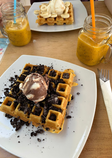 Read moreWaffles and pancakes (lots of sweet and salty options to choose from), toasties and some salads, coffee. Nice outdoor seating, service was okay. Pancake was very nice, but the waffle was the better choice I think. Very very sweet. I think they do not make the sauces and just use shop...