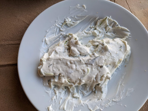 After hearing of the daily specials made by Mama, we were able to enter the kitchen to see the variety of local Greek specialties before ordering. The aroma and views convinced us both to order the lamb in a pot special (choices of rice, spaghetti or fried potatoes- we chose rice and spaghetti, which was served with a simple garlic olive oil, and fresh parmesan shreds on the side - YUMMY!), with a side of Tzatziki and local fresh bread. Along with the house white wine, which was fantastic, we enjoyed a tremendous, romantic dinner at a table for two on the veranda.
