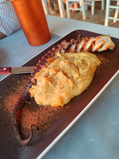 For food, we shared a starter of grilled octopus, and for mains we shared the lamb kleftkiko and the stuffed squid. The octopus was sadly overcooked and therefore tough as well as severely under seasoned and the only overriding flavour was the "grilled" notes, and the fava bean puree it came with was also sadly lacking any seasoning or flavour. The only saving grace was that it looked pretty.