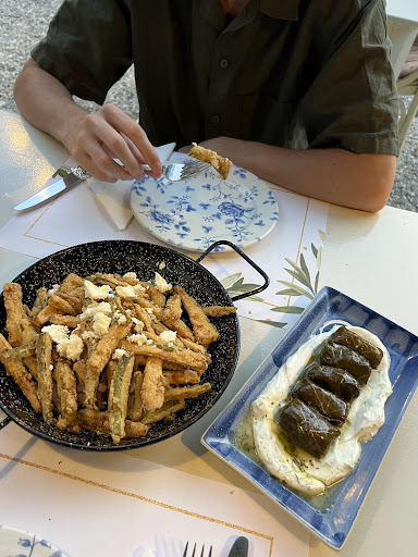 The food was incredible! We started with vine leaves and fried courgettes. The vine leaves were honestly the best I’ve ever had, and the courgettes were light and crispy, though the portion was huge for just the two of us.