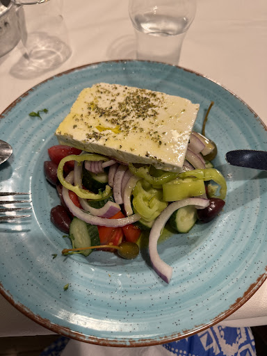 We arrived during a busy time and were seated at a side table away from the main dining area. This may have contributed to some of the service issues we experienced, but we completely understand that busy evenings can be challenging for any restaurant. Our waiter seemed a bit overwhelmed and took about 10 minutes to come back for our order after bringing bread and water, which we hadn’t ordered but assumed was standard. The food itself was very good—fresh, tasty, and well-prepared—and came out relatively quickly, which we appreciated.