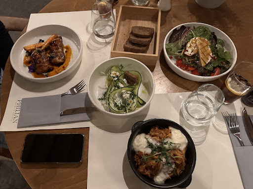 Food was good, could have added an element to the dishes to bring them together, balance them more and give them so colors. I had the meatballs and my wife had the chicken. Presentation on both were quite poor but the taste was good, Just lacked a little something to make them shine. The meatballs were Just that and some fries, could use a small salad or a small side sauce. The chicken was Brown on Brown. Not very fancy plating with breadcrumbs and Brown mushrooms so the entire plate was Brown, could also use some acidity to balance it and something to not make it all Brown. Could also be better without all the small chicken bones. Made it quite cumbersome to eat. Taste was good though. The best part was dessert, chocolate tart, Great favors, rich, cruncy with a little creamy thing and a Nice culi of a berry on the side was Great balance. the Nice manager Tre Who welcomed us was also a very welcome addition, very Nice man. Would go again, could be amazing with a few...