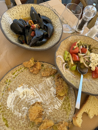 Service from our waitress was disinterested and slow. The food was unappetising. Appreciating that this is supposed to be Greek with a twist (modern) the food was at least to us tangy without reason and the simple dish - fried calamari was so so rubbery. Either due to not being fresh or very much overcooked.
