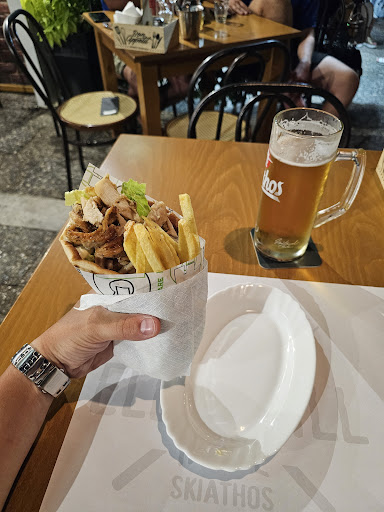 Read moreL'esperienza più imbarazzante della mia vita. Io e la mia ragazza siamo arrivati in questo posto, abbiamo ordinato delle birre, un gyros e una moussaka. Le birre sono arrivate subito, mentre per il cibo abbiamo aspettato più di un'ora, prima di scoprire che i nostri ordini non erano ancora stati processati. Pensavamo che la moussaka richiedesse un po' di tempo e per questo non abbiamo chiesto prima. Nel frattempo cercavamo contatto visuale con le cameriere che ci hanno totalmente ignorato. Ma la cosa più imbarazzante é che eravamo 4 tavoli in tutto il locale, cioè non si sono accorti che uno dei 4 tavoli non era stato servito mentre tutto lo staff era seduto a un tavolo a parlare. Dopo aver scoperto che il nostro ordine non era ancora stato processato ho chiesto di pagare le birre per andarmene, mi hanno fatto pagare le birre il prezzo pieno, quando mi sarei aspettato almeno almeno uno sconto, magari avrei sorvolato su questa recensione in caso, e invece si beccano questa bella stella! Mi dispiace per la cameriera che ha preso il nostro ordine, era giovane, ma comunque é troppo grave che non si sia accorta che noi eravamo lì ad aspettare da più di un'ora. Evitate di andare in questo posto, ci sono posti molto belli e dove si mangia bene per tutta Skiathos, ma soprattutto dove ti trattano...