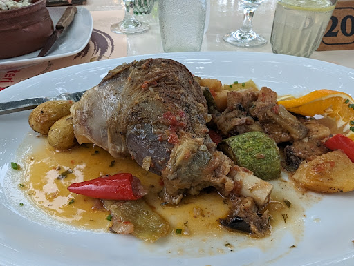 We came here expecting good food at a decent price, considering the fact that it is family-run and that it is right next to some other very popular restaurants, having therefore more competition. We ordered 3 meals and water as a drink; we chose a kleftiko, stamna and a slow cooked lamb. We received a 54 euro bill, the highest we ever got here in Skiathos (which already has quite high prices). The food was bland, the lamb especially; the meat itself was quite dry and extremely hot, to the point of letting off steam when we moved it. It was very "wet" and oily, almost akin to a stifado or soup. The vegetables were likely frozen, or at least tasted so, in particular the french fries. Moreover, the portions were quite average. The gifted dessert was fine, nothing special. All of this would be tolerable - kind of - had the prices been halved or so. But with such high prices, you expect much higher standards. If I had to say something good, it's that the staff was very ready and kind. The location itself was decent. However, the most important thing, the food, was...