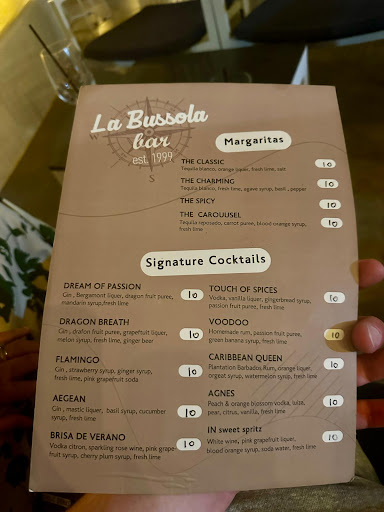 In my top three cocktail bars in Skiathos easily, La Bussola serves awesome cocktails, frozen beer accompanied by nice music at the proper volume with a nice atmosphere, comfy seating, nice environment and the possibility of feeling better as the temperature there is lower than in the city and there's always a chance of a cool breeze. The cocktails are very well made and fairly priced and the are always snacks accompanying the drinks. Everytime I visit Skiathos, I visit la Bussola...