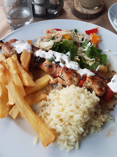 We ate here last night. It's a little way off of the main road. Absolutely stunning place. Very clean. Tables evenly spaced and a variety of seating areas. We found all the staff to be very friendly and welcoming. We didn't book as we prefer to eat around 7.30pm so we had a choice of tables. However if you want to eat later it would be advisable to book as a lot of tables had been reserved and the place got busy. Our bill came to €37 for two of us. This included a cold starter each, two chicken kebabs, a large water, a pint of beer and half a litre of house wine. We also enjoyed complimentary chocolate cake. The food was delicious as was the setting. The only downside is my Husband found it to be a little noisy due to the amount of people there. It wasn't a problem for me.
