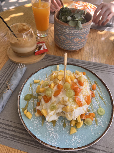 Read moreA delicious brunch! We stumbled across Olimera on our way to the beach and had brunch here. The Greek yoghurt and fruit on pancakes are to die for! My partner had the full English and it was very good, with good quality bacon and sausages. The portions are huge I saw others eating omelettes which were massive. I would 100% recommend and return! Also a great frappe and fresh orange juice. The atmosphere is so peaceful with the pool alongside and...