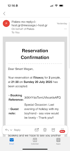We were really looking forward to dining here on our final night in Skiathos. We had booked the restaurant weeks in advance after reading glowing reviews and were excited to end our trip on a high note. I even followed them on Instagram and kept up with their stories because I was genuinely excited to try it. Sadly, we never got to try the food or experience the atmosphere…