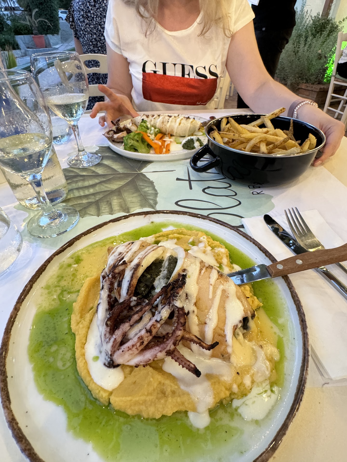 Last week, we visited the island of Skiathos to celebrate a family wedding. We were staying in a local hotel and used this bar as our base to meet in the evenings. The staff were great with us — very loud, very excited, and at times a little drunk English folk. Drinks and cocktails were great, and bar snacks were tasty. I didn’t personally eat in the restaurant, but I heard lots of positive feedback from people who did.