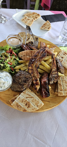 Restaurant is lovely, meals were so so. Husband ordered burger stuffed with cheese,he liked it because the cheese was tasty and burger was homemade with lot of spices. I ordered chicken salad which was (similar to Ceasar) which i didn't like and left half of it.It was veru dry and had some strange,mild,boring dressing. Also, chicken(which was old and hard to chew) was served in two huge pieces,that just isn't my thing, I like small pieces of meat in salads. The biggest fail was baklava(which also had very strange taste of herbs) and the price was 12 EUROS, really, for baklava with two icecream scoopes? So be cautios and check the prices of everything before ordering so you do not end up paying 12 euros...