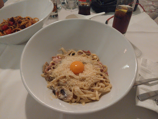 Don't let the appearance of the restaurant's entrance deceive or discourage you. The inside and the balcony of Ricchi e Poveri is going to please you in so many ways. First and most importantly, the food is freaking awesome! The linguine carbonara was delightful. A big ( great portion! ) piece of paradise to your mouth! The pasta was cooked to perfection, the sauce was as good as it gets, the pancetta meat was more than adequate, from the right parts of the meat and in balance with the rest of the dish. The appetizers are mostly... Spanish, tapas of all kinds to be precise. A whole lot of them. Meat, vegetarian, creative, everything and anything can be found in their tapas menu! The view from the balcony is very calming. The personnel is very kind and always there to take care of your needs. Their prices are very reasonable, definitely in my top 3 of gourmet Italian restaurants in terms of quantity and quality to price ratio. Don't miss the chance to eat at Ricchi e Poveri if you're a pasta fan,...