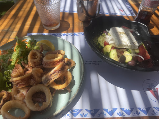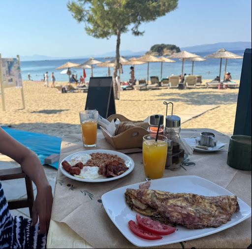 Read moreOk. Before anything else. My wife and I had a chicken gyros..chicken souvlaki..greek salad..pint of lager and a spring water...complimentary dip and bread. It was utterly delicious...right on the beach..beautiful views. How much did I pay? Well when I went to pay I thought he had the wrong table! 18 euros!!!??? My gyros was stupendous! It was 4 euros. I paid 8 euros on another beach for 1 pint! I don't drink pints of lager...but the sun does that to me. I'm more of a Jack Daniels man. I would need a small loan to pay for spirits..hence! Anyway...the place has to...