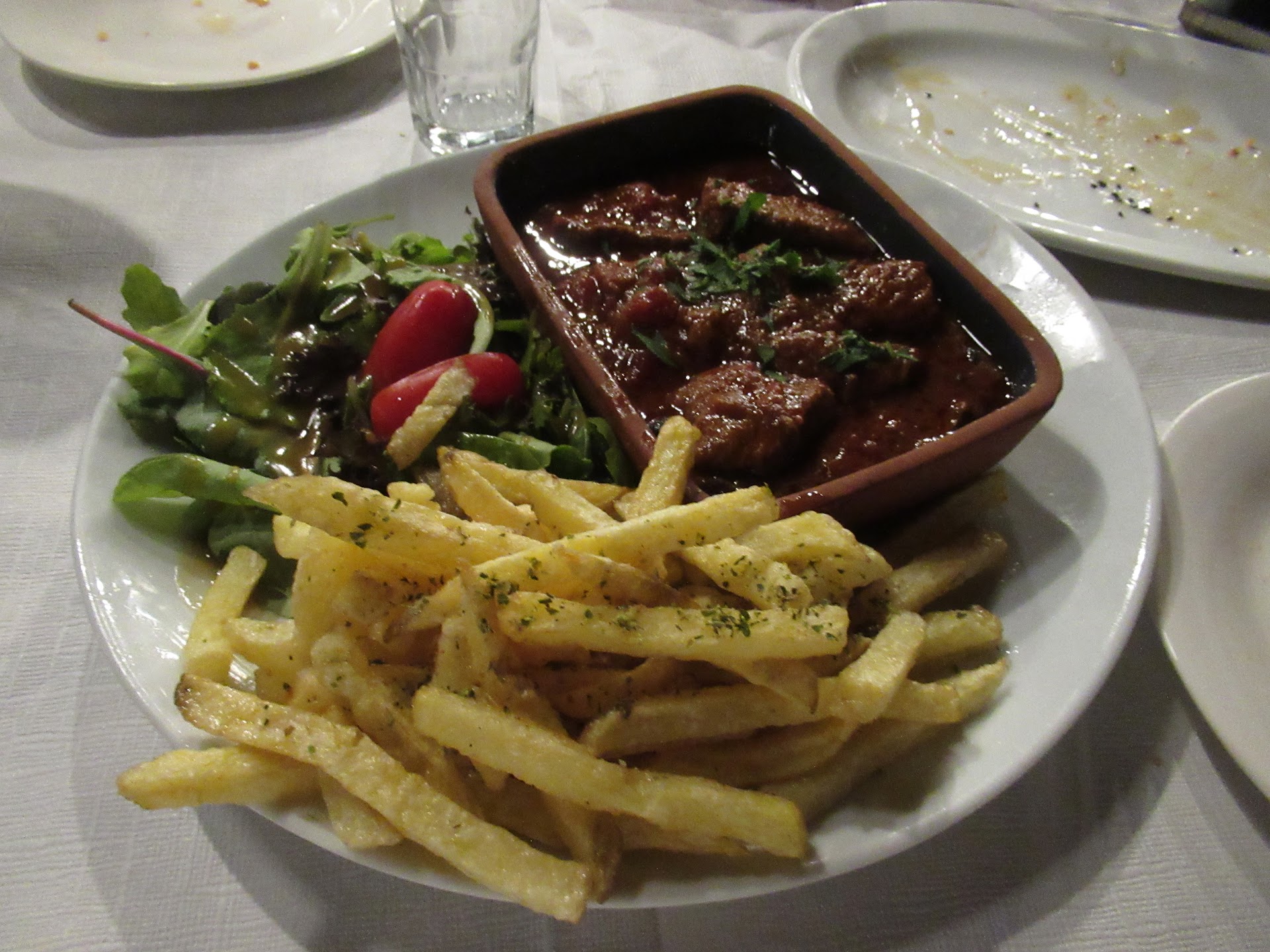 Read moreSmall pastrami pies- covered with homey, savory meat/tomato filling. Something different but we all loved it Braised veal- delicious!! Tender meat, tomato ish red sauce, fries, and salad with a sweet dressing Prime rib steak- perfectly seasoned. Got it cooked Medium and it was tender, not too red but not too cooked, came with flaky sea salt and fries Bread appetizer was 1E per person. They don’t really ask if you want it, they just give it to you. Live performers, it was cold because we went at night and it is by the water. Bring a jacket!! Sometimes the wind would blow hard and blow all the napkins/trash around. Restaurant was in eyesight of our hotel which...