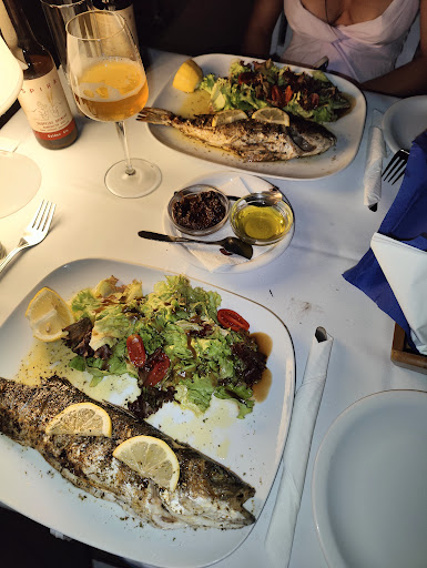 Back to our food, the plates were pretty late to arrive: we had a booking at 20:00, the plate arrived at 21:15. The wait was far too long. Let’s start with the seafood platter: VERY disappointed. The menu mentioned « squids and cod » not fried squids and cod. When ordering a seafood platter from a seaside restaurant you definitely expect fresh fish and seafood, not FRIED. The menu mentioned « Shrimps » so a plural noun… why was it a single shrimp per person then? Also, where were the mussels? Again, mentioned in the menu but non existent in the plate. Garlic sauce was mentioned but it got replaced by something like a bad tzatziki. And last but not least, the salad was drenched in balsamic…. Overall, the variety of fish and seafood was off, a very narrow choice. Moving on to the boar sausages, three sausages was satisfying but they were very salty and the side was… just a potato and half and the « paprika sauce » tasted more like mayonnaise. A LOT of mayonnaise. The swordfish was good, though.
