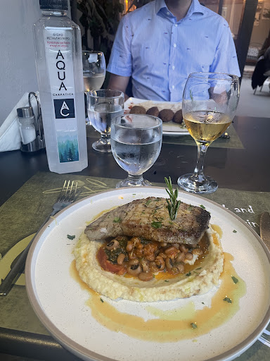 The food was lacking in flavour and was overpriced. I dont look at prices when the food is good but this was definitely not it. Starters priced at 18euro and mains at 25euro. All seafood and fish on the menu was frozen which also doesn't explain the high price. The staff was a bit slow and it took 45min to get the bill and the card machine after we asked 4 times. We did try to pay at the little kiosk on the entrance twice but they said they would come to the table which they clearly forgot. There were 5 of us and we did try a variety of dishes and we wish we had a visited a taverna! Thank God Kochylis the patisserie is around the corner with their amazing desserts to save the day. I would have taken photos to add to the review but it was a meal I dont want to and not...