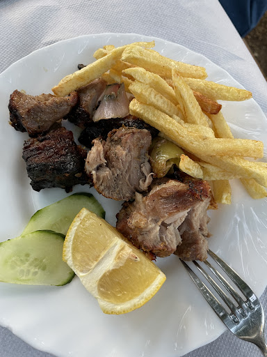 Full of Moskitos (in a season when West Nile virus was announced as a threat in Greece)...mainly because they have a “inner lake” with two ducks (very cute for photos if you are 12 years old). The lake is a clear infestation cradle. It doesn’t seems to be taken care very often. The menu itself is very limited: grilled meat and greek regular starters. They do have something special but you need to order one day ahead...we took the road of checking the place once before ordering a “30 euro, one day notice meal”. I think we took the right decision when we decided never to try the “special” recipe. Mainly because the simple chicken that I ordered in the “trial visit” was not grilled enough. “How can you under-cook chicken meat”, you dare ask, well I will tell you: you put a old man at the grill who spends more time smocking than grilling. We also ordered pork meat...well I’m almost sure you tasted stale pork meat so well roasted that the cook tried to make sure no one can tell how many days have passes since it was out of the fridge. We also had tzatziki and bread but at this place, these didn’t really improve the overall sense of rushed things. House wine. Probably the best thing they have. The service: 3 guys running around in chaos making every simple order take 20 minutes. The food was ready in 15...check paragraph nr. 2 for more details. I haven’t seen the kitchen and rest of the stuff. Kitchen is not open (which is kind of irregular now days). The place: I already spoken about the pond. The location is convenient for the tourists staying nearby and locals of the island who come by car. The “garden” looks ok...if you ignore the “pond” and the insects. The most interesting and nice thing about this place was the one eyed cat they have...
