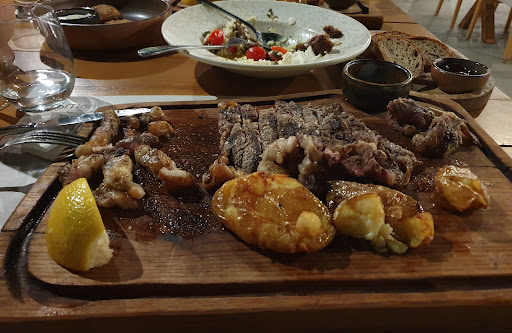 Read moreThe location and design of the restaurant are amazing. Minimalistic, with really nice music and a great view. The staff was professional but I wouldn't exactly call them friendly - it could be just because they seemed to be busy and trying to find their steps and coordinate. We ordered a salad and a starter, which were good, but the two steaks we got were full of fat (see photo attached) and they didn't taste particularly good. The prices were reasonable in my opinion (€65 for two persons) but not for this quality of food. We visited 6 other restaurants while on the island and I believe you can do much better than that. You've got the location, a very nice atmosphere and place and it would be a real shame to not improve the quality of food and service. I wouldn't say it doesn't worth visiting but don't get your hopes up about...