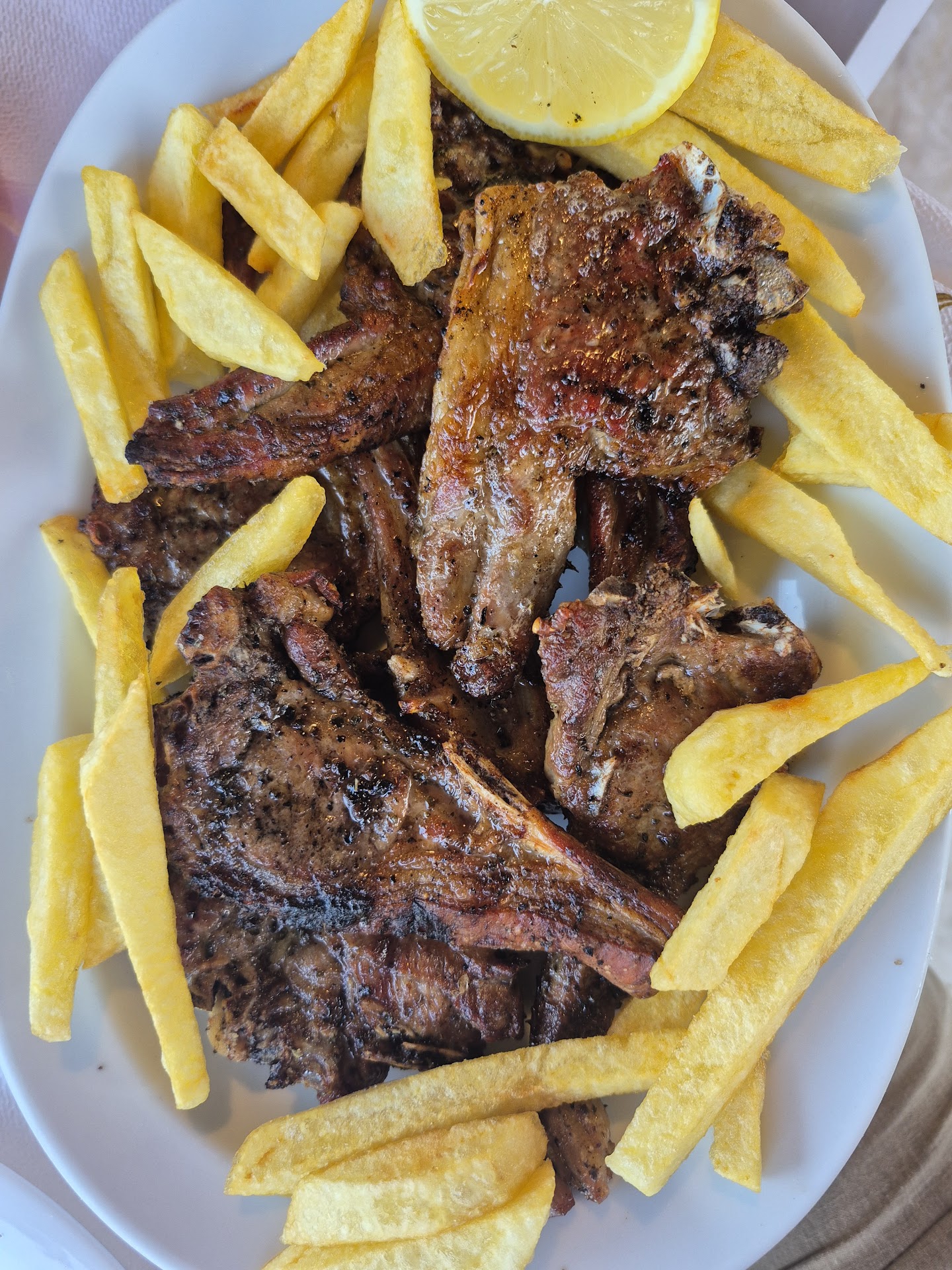 We were told this is the best lamb chops place on the island and that the staff is super friendly. But this was our worst experience on the island service and food wise. We were completely ignored by the young waiter and people that came in later were even served earlier. He even explicitly ignored us when we wanted to call him by putting up the tray by his head to hide his face! We were just two people, my boyfriend and me (pregnant). When passing by our table he even pushed my bag that was hanging on my chair against me in a very passive aggressive way. The older waiter was much nicer and helped us but then we ordered the lamb chops and they were chewy, tasted like old goat and we figured that the grill wasn’t cleaned well. I don’t know what is going on in this place but definitely...