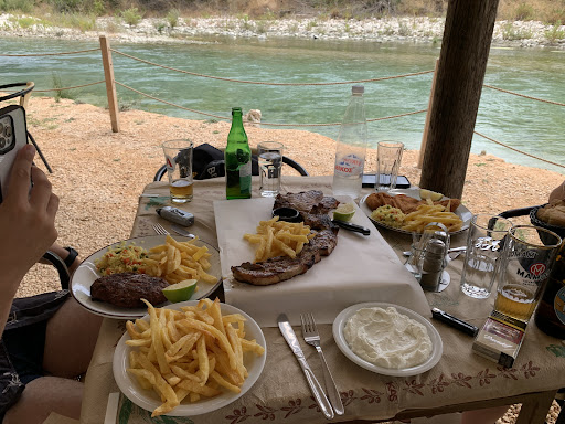 the food was amazing, we ordered souvlaki and the meat was very tasty, soft and crunchy at the same time, one of the best i've had! the homemade lemonades were perfectly sweetened and so refreshing, while the staff was very friendly and hardworking! also, the place is very clean and the location is beautiful, you can literally put your feet in the river while you wait for the food. it was decorated with hanging flowers, which i loved, the tavern has such a pretty, friendly and warm vibe, i definitely...
