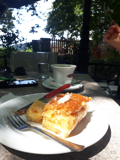 Read moreThe location is great and you have amazing view. We had sweets since we had lunch in another village earlier. The Galaktompoureko was average and the Karidopita not something special. Anyways if you want to be at the Platia of Milies its a safe choice....