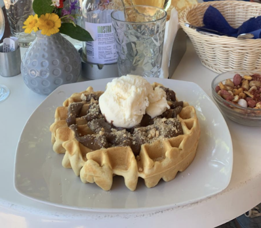 Snacks.... Me and wife had crepe and waffle. Could not finish. Too big. This place is a diamond. Waiter could not speak English but really really nice. If you are on a boat trip and just want lunch, go here. Lunch + wine €15 total the waffle in the picture is a...