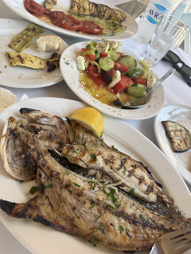 Good food and excellent service. Apart from grilled and baked fish, you will have a choice to eat cooked meals too. The fish is fresh and you can take a look at it before selecting what to eat. The grilled tsipoura fish was excellent, and the tyrosalata (cheese salad) was one of the best I have eaten.