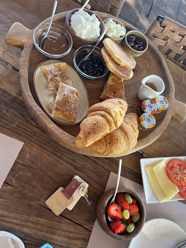 Dinner was blah. We ordered overcooked chicken, which we sent back but were told the kitchen thought it was fine? Then we got fish and it did not include the items stated in the item description. Came for brunch twice. First time was ok. Yogurt was delicious, pancakes overcooked. Second time, asked for iced coffee got warm. Was also served warm champagne. Yogurt bowl had completely different ingredients than two days ago? And the pancakes were still completely overcooked.