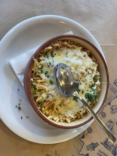 We ordered three different dishes Giouvetsi (mine): The meat was tender and the orzo was well cooked, but the overall flavor was lacking. The sauce had little to no taste, and the dish was under salted, something I realized too late was up to me to fix at the table. The portion was decent, and the presentation was okay, but this one didnât really stand out for me in terms of flavor. Honest personal rating: 2.5/5 Gyros (my motherâs): I tried a bite of the meat, which was tasty but slightly dry. It came with fries, fresh tomato slices, red onion, tzatziki, and some pieces of pita. The sauce was definitely the highlight m, both my mother and I agreed on that. Portion wise, it was balanced, not overly generous, but enough. The plating wasnât anything special, but the dish overall was solid. Motherâs rating: 3.5/5 Pork Souvlaki (my fatherâs): Probably the best of the three. The pork was juicy, properly seasoned, and cooked just right, not dry, not chewy. It came with fries, a side salad, and a slice of pita. Presentation, again, was not impressive, but the flavor and quality were definitely there. My father was very happy with his choice, and Iâd agree. Fatherâs rating: 4/5