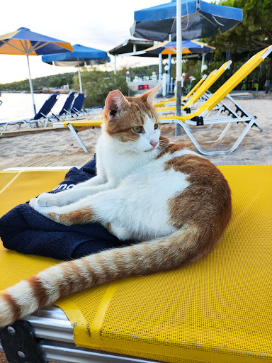 The atmosphere is a typical tavern, very nice at the beach, kalm and with a relaxing feeling next to the sea.