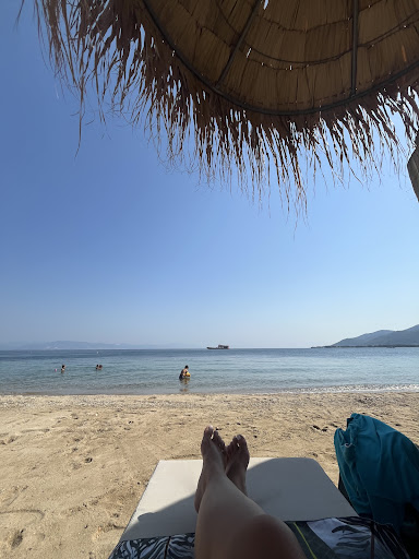Read moreFirst row is 40€, other rows have a spending limit of 25€ per set. These prices are the minimum you can consume. The beach is beautiful. Especially the sun loungers are very comfortable. The staff is very attentive and friendly. The sea was wonderful. It gets deeper after a certain distance. There are occasional mosses but this is not a problem. Apart from the sun loungers, there were also in the lodge. It is also a suitable beach for families with children.And there was great music playing. I loved...