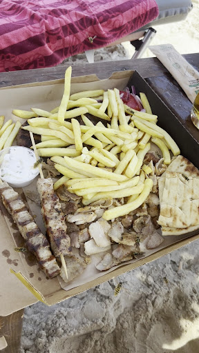 Read moreIt's a great beach. The prices are a bit steep, but it's normal for a beach bar, you can't expect a 5 euro gyro and a sunbed spot. Anyways, the service is pretty good, their English is okay, they won't understand you sometimes but it's fine, it's good enough for you to tell them what you need. The reason its 4 stars and not 5 is something which i don't think it's their factor, but there's a LOT of wasps. They aren't aggressive but they swarm your food and make it really hard to eat while you are at your sunbeds with your friends and family. it's a big problem. I don't think they do anything about it, so if you order something in a plate or bowl, you will be attacked by more than 5 wasps at once, and they won't leave you alone. Otherwise the food is pretty solid, don't order the chicken tortilla though, its pretty bad.. I'd recommend gyro and a club sandwich, they're huge and pretty tasty. The drinks are ridiculously expensive though..