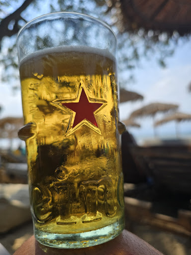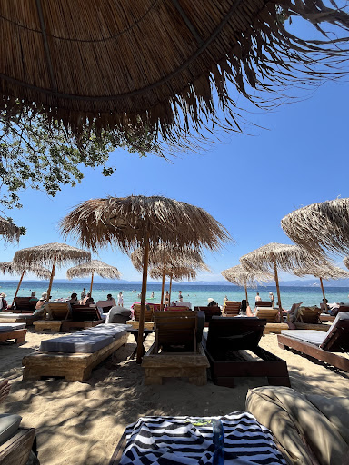 Read moreFabulous beach bar with sunbeds and great selection of food and drinks. Located on the best spot on Pachis beach among pine trees with slow sandy entrance in the sea. Shallow warm water with pine forest in the back . The cost. Well, it may sound expensive for 2 sunbeds and umbrella....50 euros is minimum you have to spend for the first two rows and 40 euros for shades. However that is your consumation Whatever you choose to drink or eat We had fresh fish every day which was beautifully prepared...in the rang of a top class restoraunt So you have prime location..great food and sunbeds of your choice for a whole day . And trust me its worth staying for the sunset.... Staff is well organized and very friendly. Keep in mind that you do need to reserve your sunbeds due to a popularity of this place. Some will say its too busy or perhaps too loud music.. Well .you cant be on the one of the best beaches and expect it not to be busy . As for the music..it gives a great vibe to the whole place... Ideal place to chill out. Highly reccomend to families. Our 3 year old loved the food and the sea so much....