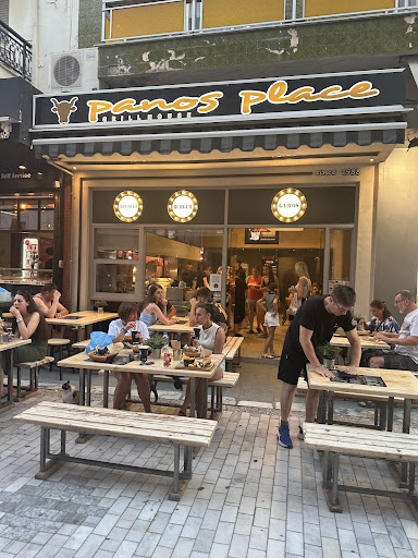 We ended up ordering the only burger without a burger beef patty, even through the menu suggested that ALL burgers came with a "PANOS PLACE 100% BEEF BURGERS". We got sausage(-d)...