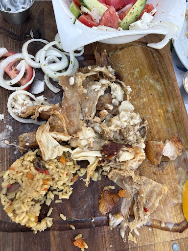 Read moreThe waitress was pleasant enough but the overall experience was very poor. We were brought no water, the chips with our sausage meal were dry and seemed like they were made earlier in the day, if not day before, the pork and beef âhandmadeâ sausage was chalky and dry, with a thick skin, the tsipiro tasty really weird. The standard tomatoe and cucumber Greek salad was quite good, the only redeeming factor. It was also quite telling when we realised that the only guests in the restaurant were all foreigners, no locals whatsoever. Based on our experience, would not recommend this restaurant for anything, except maybe the view during daytime, but even then, there are plenty of other places to enjoy a view and certainly, much better food. Sorry to the owners, but after 2 weeks in Greece this was the first bad food experience I had, and it was definitely WELL below what I had come to expect after all the other places I have eaten at, you need to lift your game if you want to stay...
