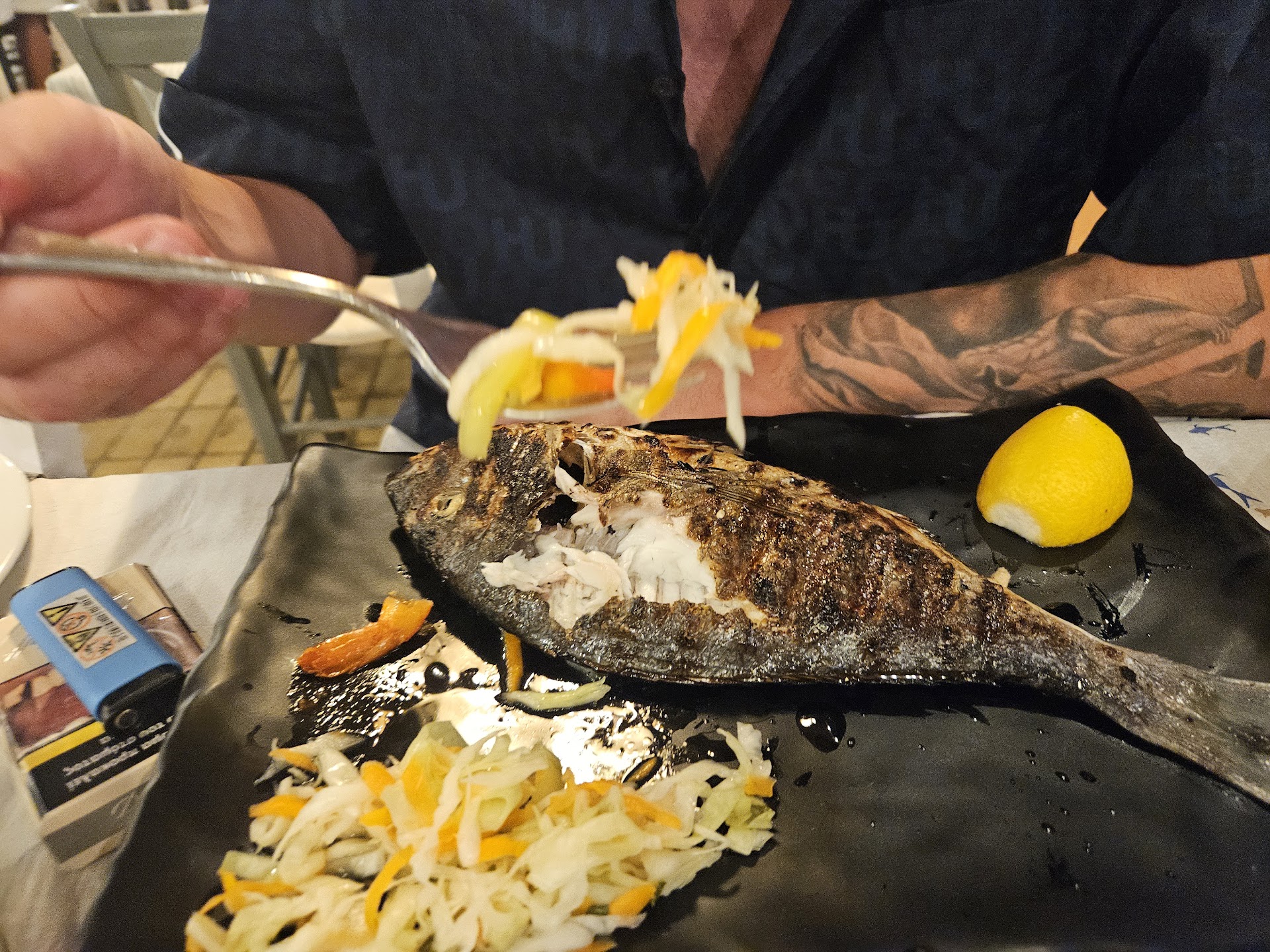 Read moreWe turned up around half nine and they were happy to accommodate us, the waiters were busy but were always friendly and polite and offered us a table closer to the beach once one was available. My other half had the grilled sea bream which was cooked to perfection and very good value and I had the chicken souvlaki which was tender. We shared a salad that was very generous and washed it down with half a litre of reasonable barrelled wine. All in all a decent meal at a decent price. The one curious thing was most of the dishes came with both rice and chips which seemed a little strange but both the rice and chips were good. It may just be your typical taverna food but...