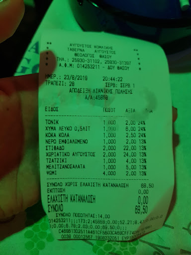 Read moreWe’ve been visiting Taverna Augustos in Theologos, Thassos, for at least 10 years, and it never disappoints! The Greek nights are the absolute highlight, offering an incredible atmosphere with talented performers who truly engage the audience. The guitarist is especially amazing, playing for hours on end and even singing songs in various languages to include everyone. The service is warm, family-oriented, and welcoming, and the owner, Augustos, is always present — even singing himself, which adds so much charm.