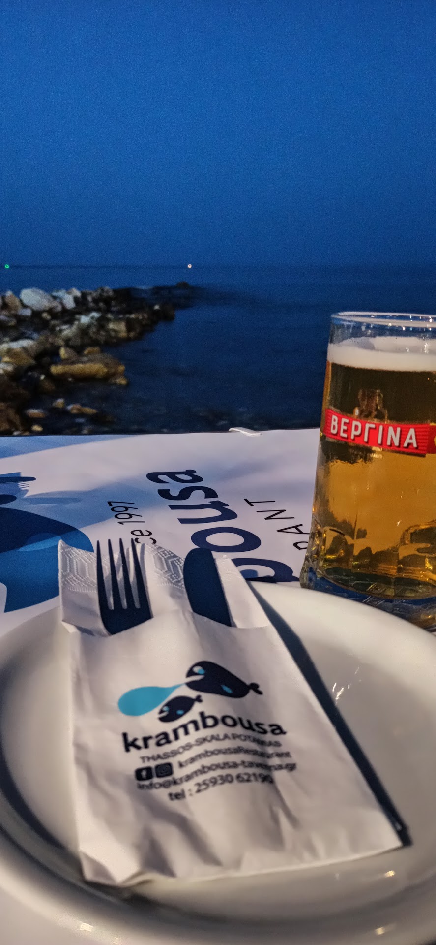 Read moreBest experience in Thassos, no matter if it's breakfast, lunch or dinner. Very tasty food, sea food and the bio vegetables! You can find good food in most "tavernas", but I cannot say the same about the service :( Krambousa staff and service was great - very kind, helpfull and honest! You can tell it's a family run business and they want returning customers. Unlike in other tavernas the olive oil is on the house (delicious and carefully picked), they only bring bread and water if you ask for it (other just put it on the table and then on your bill) and have considerate recommendations regarding food and the propper quantities (once they recommended only 1/2 portion of soup, since the main meal was consistent :)). They've also helped with recommendations for local products (what to buy/ eat). All in all, they've made us feel excellent, even if most of the times we were in a group of over 25 "demanding" people :) (adults and kids). Chapeau bas! :)