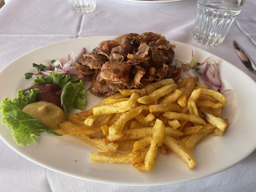 At first it seemed like a nice restaurant. They set the table brought out some glasses and plates and a side of bread. We couldn't decide what to eat so we asked the waiter for some extra time. After that it was hard to get his attention again. Our foods came out seperatly. We ordered 4 plates of food and all of those arrived at a different time. First the Variety of fish plate where the variety was two kind of fish both uncooked with 2-3 leafs of salad. After that come the burger which was a flat burger patty with fries. The menu said burger we expected atleast a patty in a bun but no. The burger patty was fine for the taste nothing special. Last was the pork ribs. We ordered two plates of those. For the first look it seemed pretty nice but then come the cold shower. Little meat on a big bone chewy, raw but somehow overcooked and burned at the same time. It was really fatty aswell. After "enjoying" our meal we tried to pay. We were trying to catch the waiters sight but they werent paying any attention to us. One of them even looked at us and then walked by. They were too busy with talking to other tables, making jokes and everything else. When we finally stood up they immediatly came to us they tried to make us sit back because they were afraid that we would leave without paying We went inside to pay and told them our experiences but they just wanted us out as soon as possible. I do not recommend this...
