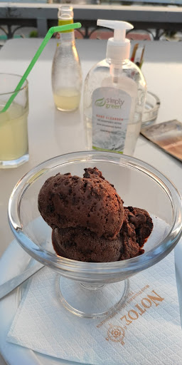 Κάτσαμε απόγευμα, λίγο πριν τη δύση του ηλίου για ένα "εσπρεσάκι", μια μπάλα παγωτό σοκολάτα και μια λεμονάδα (εμφιαλωμένη ΕΨΑ). Το εσπρεσάκι ήταν ικονοποιητικό. Αυτό που ήταν κατά την άποψη μου απογοητευτικό ήταν η μπάλα παγωτό. Η υφή της ήταν απροσδιόριστη (σαφώς απαράδεκτη). Γεμάτη από μικροκρυστάλλους νερού, (σημάδι ότι είχε λιώσει και είχε ξαναπαγώσει μερικές φορές). Μέχρι και τα κομματάκια σοκολάτας είχαν αποκτήσει την υφή συμπαγούς σκόνης!!. και προφανώς πλήρης απουσία έστω και κάποιας "επίγευσης"... Αφού πληρώσαμε, η πραγματικά ευγενέστατη σερβιτόρα (χαμόγελο, καλή διάθεση) μας ρώτησε αν μας άρεσαν. Της είπαμε (πολύ ευγενικά) για το παγωτό που ήταν απαράδεκτο και την προτρέψαμε να μη το σερβίρουν σε κανέναν άλλον αυτό το "παγωτό". Η κοπέλα, αμέσως μας είπε ότι έπρεπε να το πούμε από την αρχή και θα φρόντιζε για επανόρθωση (και πραγματικά έδειξε ότι στεναχωρήθηκε). Αρνηθήκαμε ευγενικά την οποιαδήποτε επανόρθωση. Διότι και μόνο το γεγονός ότι ο υπεύθυνος του καταστήματος επέτρεψε να περάσει το "πασο" ένα τέτοιο "παγωτό" δείχνει ότι αφενός δεν μας σεβάστηκε ως πελάτες και επίσης και ότι υπάρχει μια απίστευτα μεγάλη "διαδρομή να διανύσει" για να συναντηθούν οι απόψεις μας (οι δικές του και οι δικές μας) του τι σημαίνει στοιχειώδης...